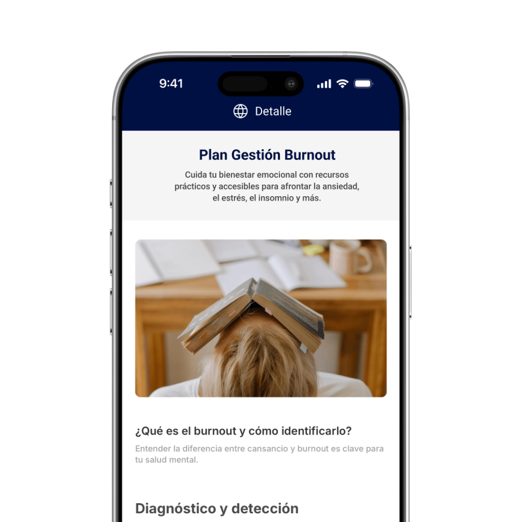Un plan para trabajar el bienestar de forma progresiva con contenido educativo, herramientas de autoevaluación y la posibilidad de hablar con profesionales cuando se necesite.